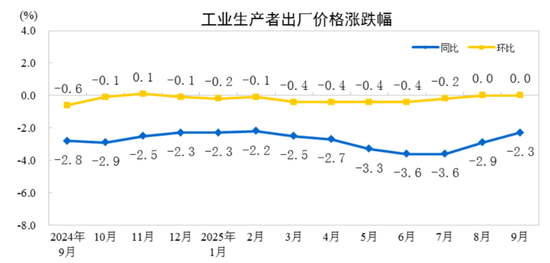 “9月PPI环比连续两个月持平;同比下降2.3%,降幅比上月收窄0.6个百分点,好于市场预期。”温彬表示。