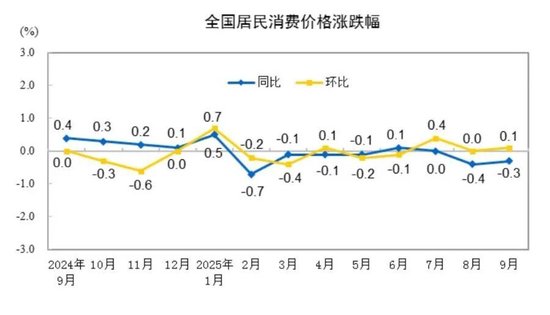 董莉娟指出,9月CPI同比下降,主要是翘尾影响所致。本月CPI-0.3%的同比变动中,翘尾影响约为-0.8个百分点,今年价格变动的新影响约为0.5个百分点。